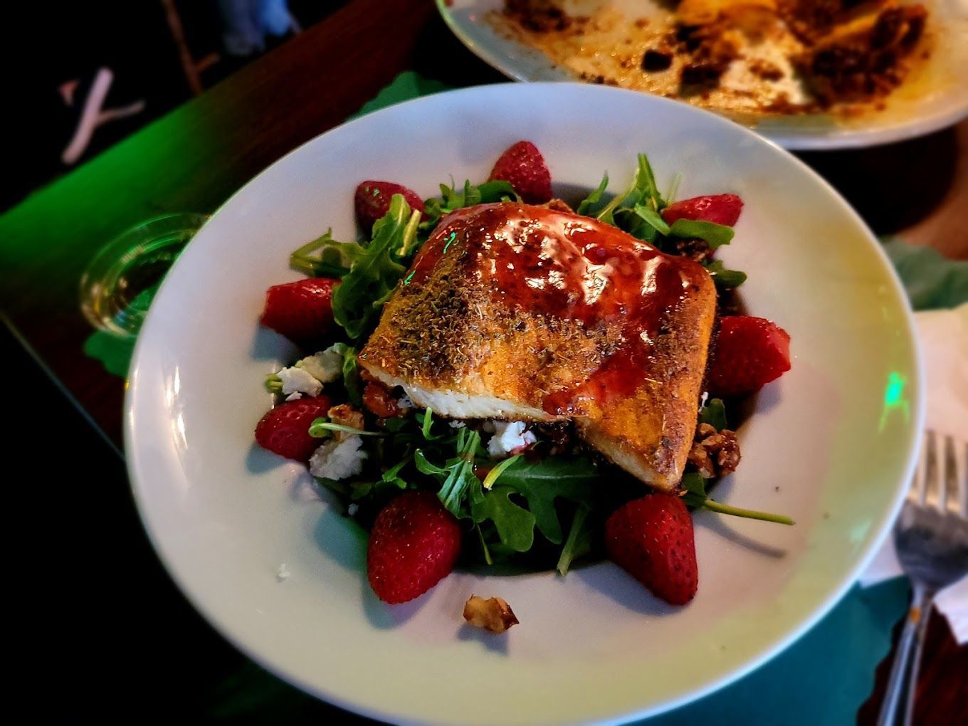 With Blueberries, Strawberries, Red Onions & Crumbled Goat Cheese With Garlic Balsamic Vinaigrette
